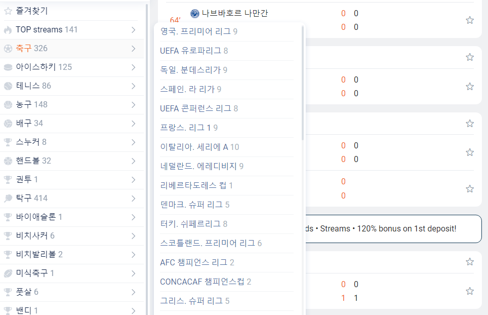 E-스포츠부터 전세계에서 열리는 다양한 스포츠 경기를 즐길 수 있습니다. 즐겨찾기도 가능합니다.